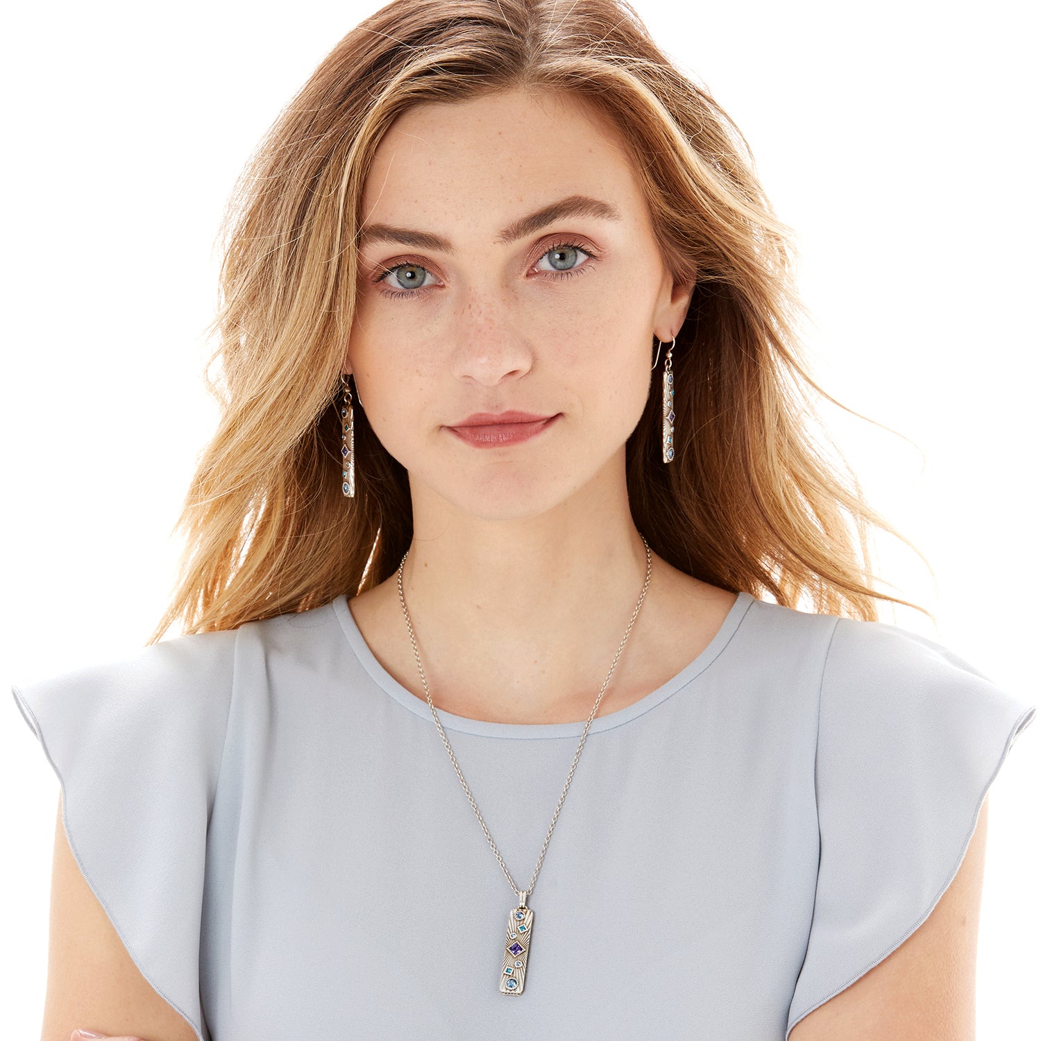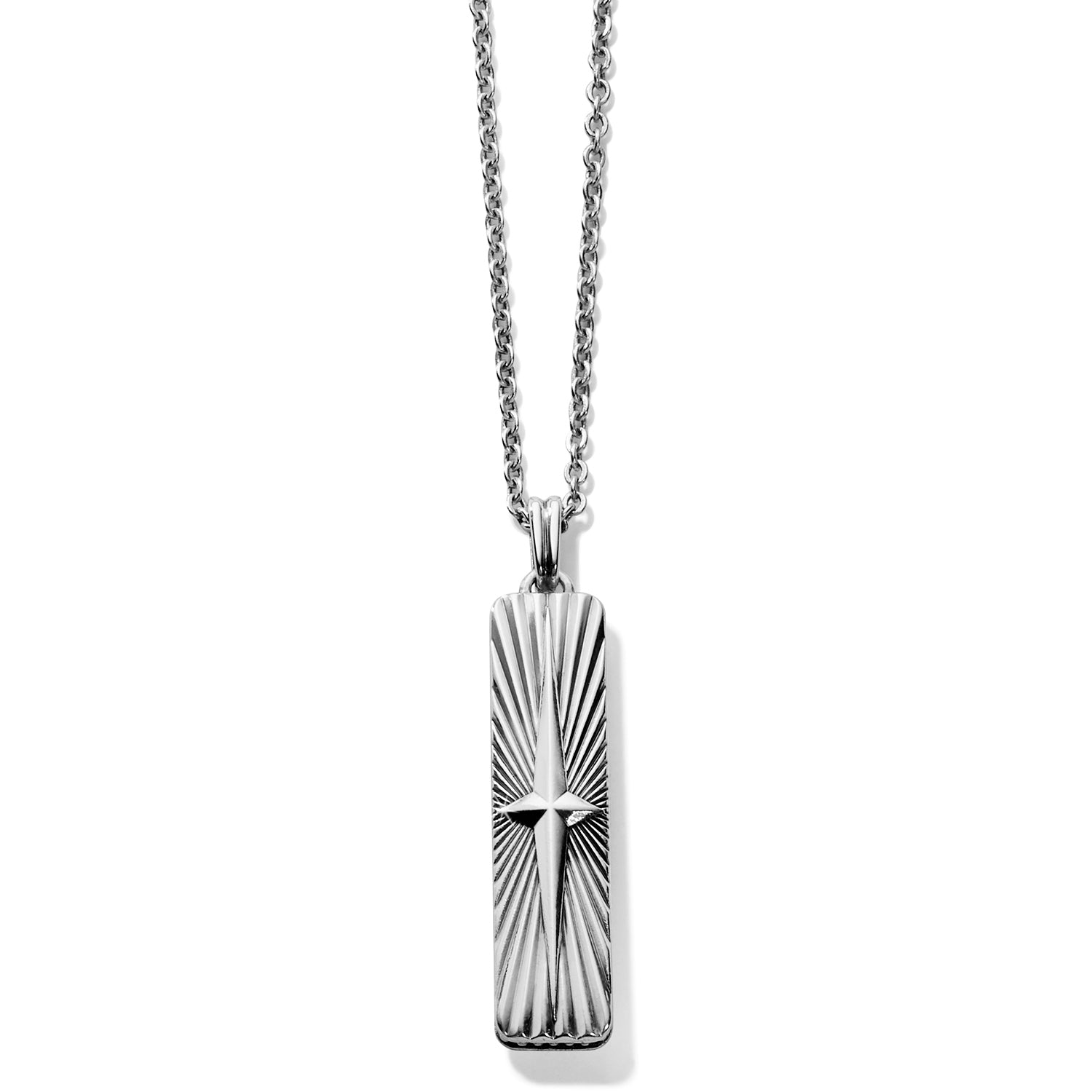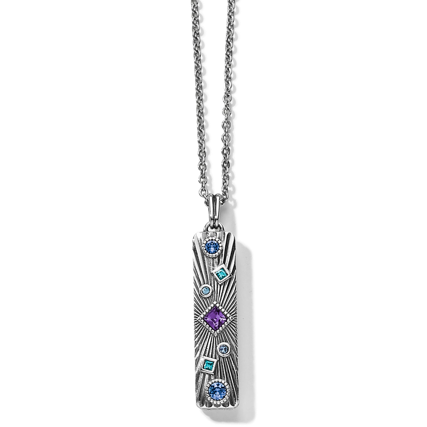 From a center crystal, others in twilight hues radiate outward on this textured bar pendant. On its reverse, a single star shines. A perfect length for layering.