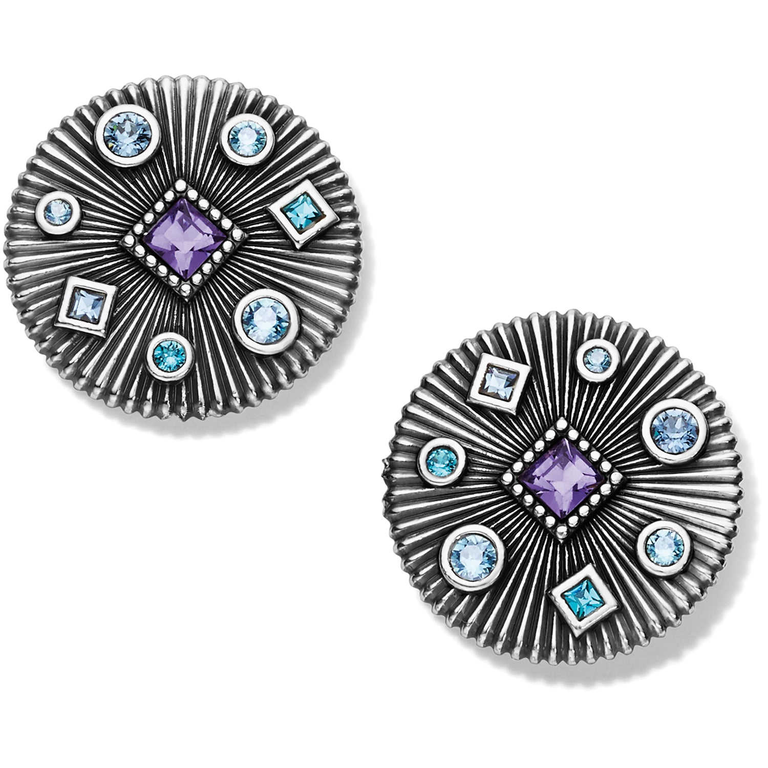 Radiating from a center crystal, rays of crystals sparkle in twilight hues against a textured background.