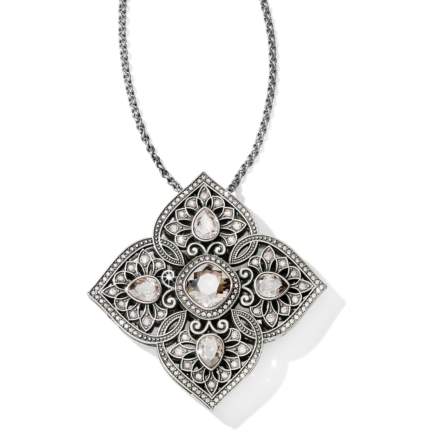 Named for Empress Mumtaz, the woman who inspired the Taj Mahal, this stylized bloom shimmers with Swarovski crystals made to echo the brilliance of rough cut diamonds from India. Wear it long or short -- either way, it's a statement piece.