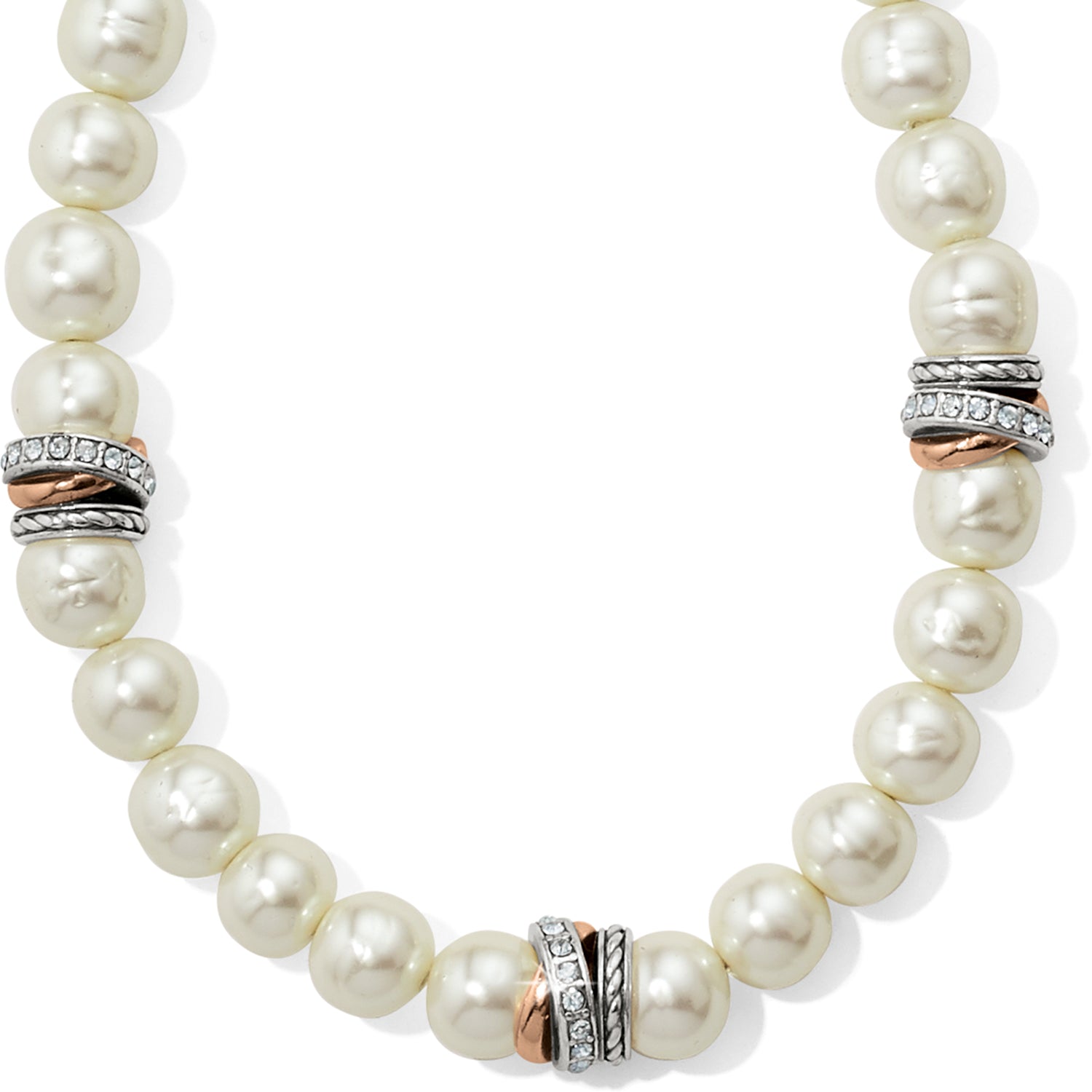 Decadent handmade Japanese pearls add luster and luxe to this short necklace embellished with a tumble of mixed metal and Swarovski-encrusted rings from our Neptune's Rings Collection.