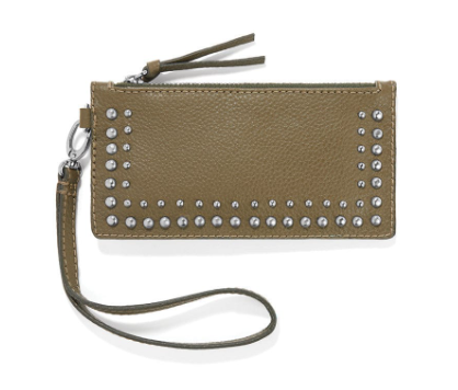 Carry your cards and essentials in this modern edgy card pouch. Trimmed in a double row of studs and modern hardware, it’s definitely a cool-girl silhouette.