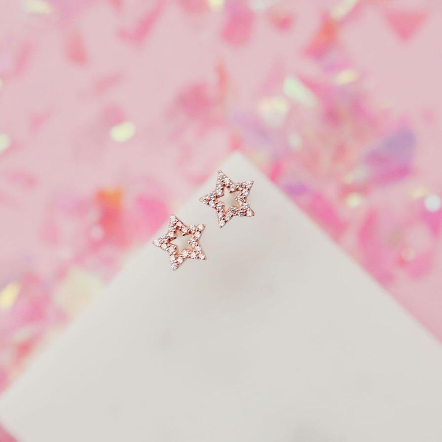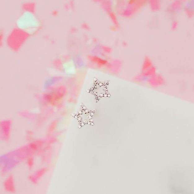 Dainty star stud earrings with white cubic zirconia pavé detail.