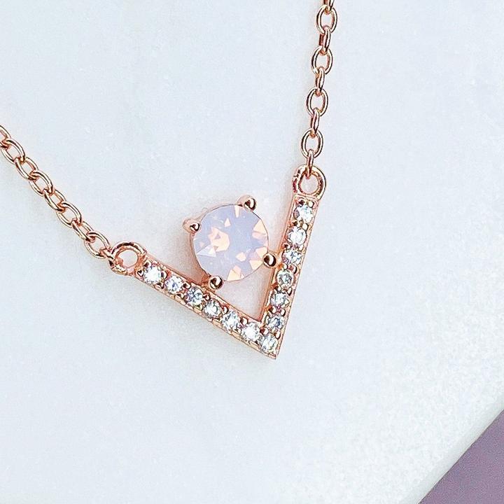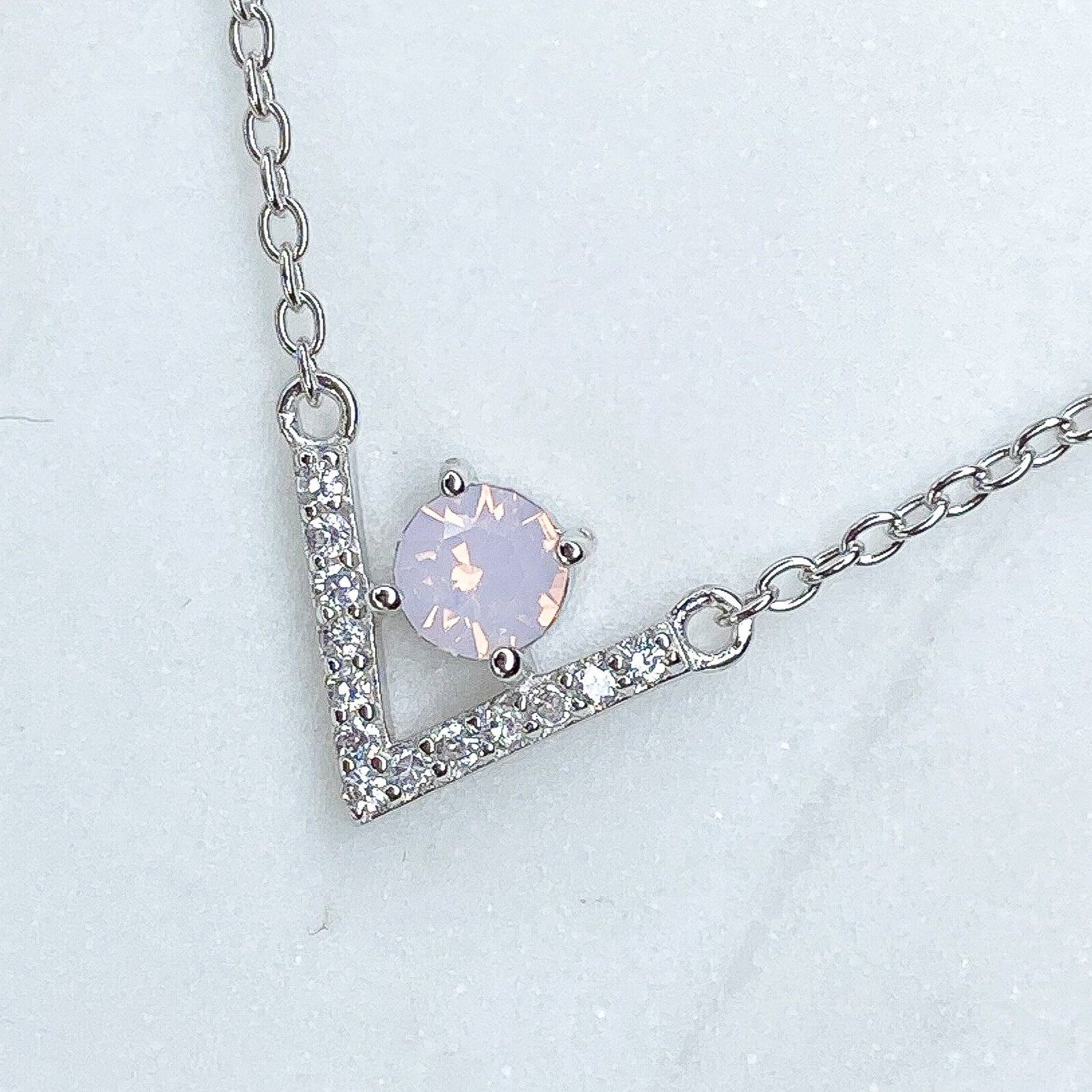 The Madeline Collection pays respect to my faithful rescue dog, Maddie. This delicate, feminine necklace is a must have for any layering necklace lover. A four prong, Rosewater Opal Swarovski stone glows between two, shimmering white pavé set cubic zirconia bars. This necklace seriously delivers ALL the "oohs" and "aahs".