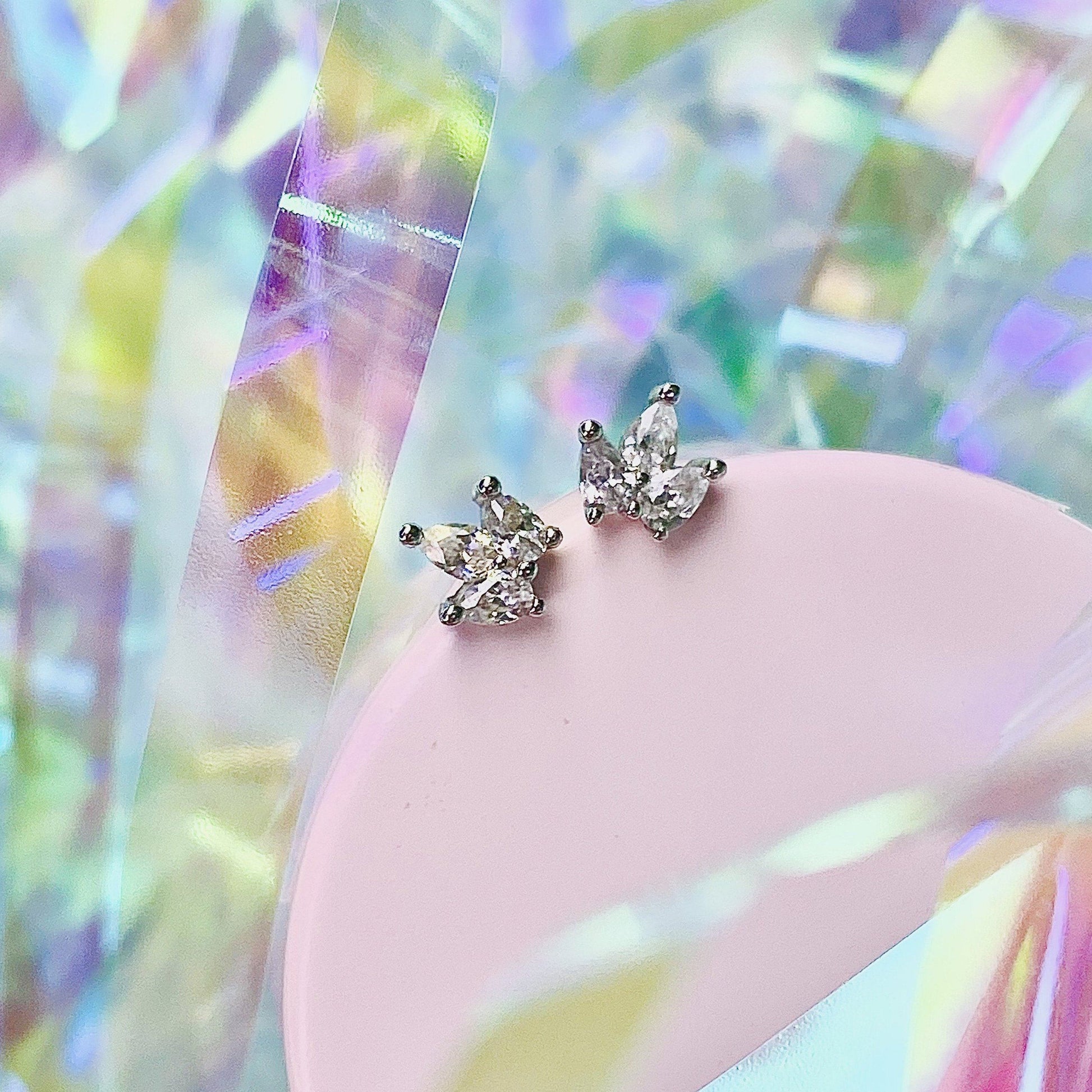 Three prong set pear shaped cubic zirconias come together in a cluster in these dainty stud earrings.