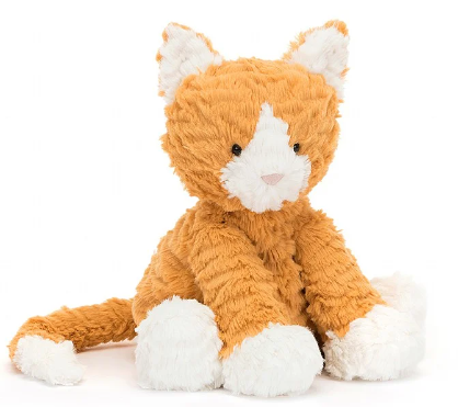 Fuddlewuddle Ginger Cat is strokeably soft in beautifully tousled marmalade fur. With splashes of cream, marshmallow paws, a pink suedette nose and a beany base, this bright-eyed kitten knows how to relax.