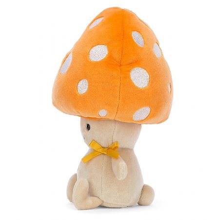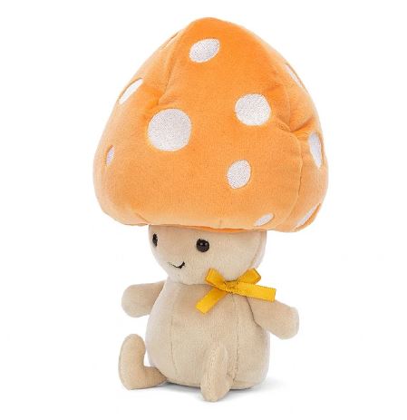 Fun-Guy Ozzie is very proud of that squishy freckled tangerine cap! It goes so well with a golden bow. Ozzie's buttercream belly and bobbly tail are often seen bopping to the fairy disco. And after the party, this diddy chum loves to doze beneath the trees!