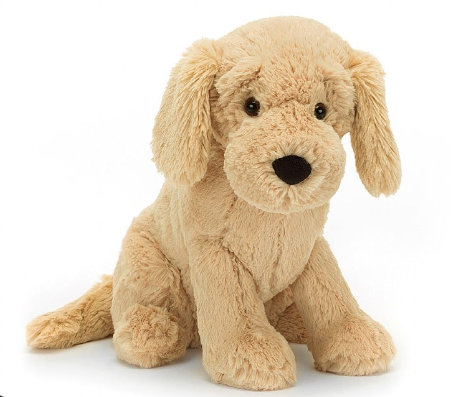 Tilly Golden Retriever is a soft biscuit pup with firm beanie paws and sits well on golden haunches. Floppy-eared with big brown eyes and a liquorice suedette nose, this retriever is coming home!