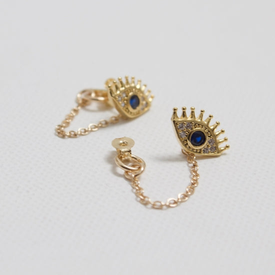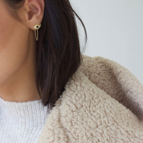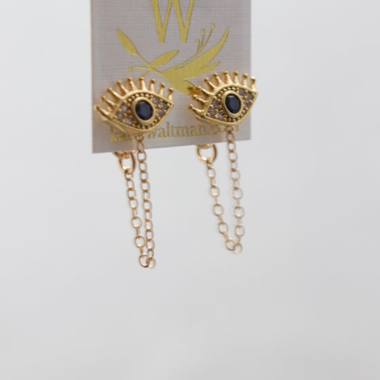 Katie Waltman Jewelry Gold Plate Evil Eye Stud With Gold Filled Chain Loop
