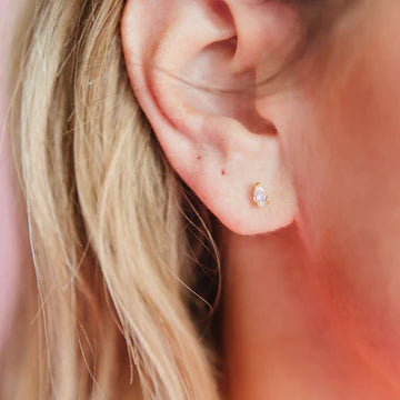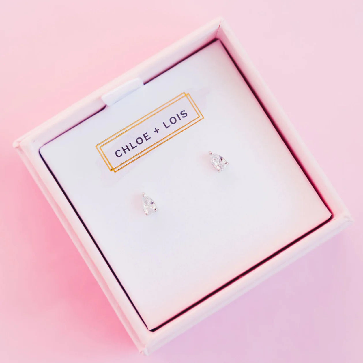 Mini Pear Studs in sterling silver and 14K gold. Adorable, classic, petite and perfect!