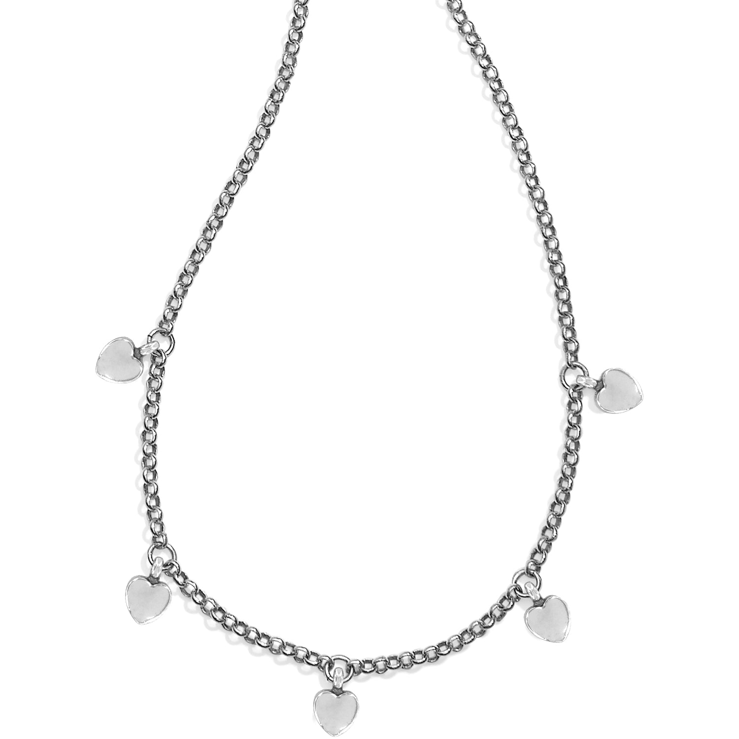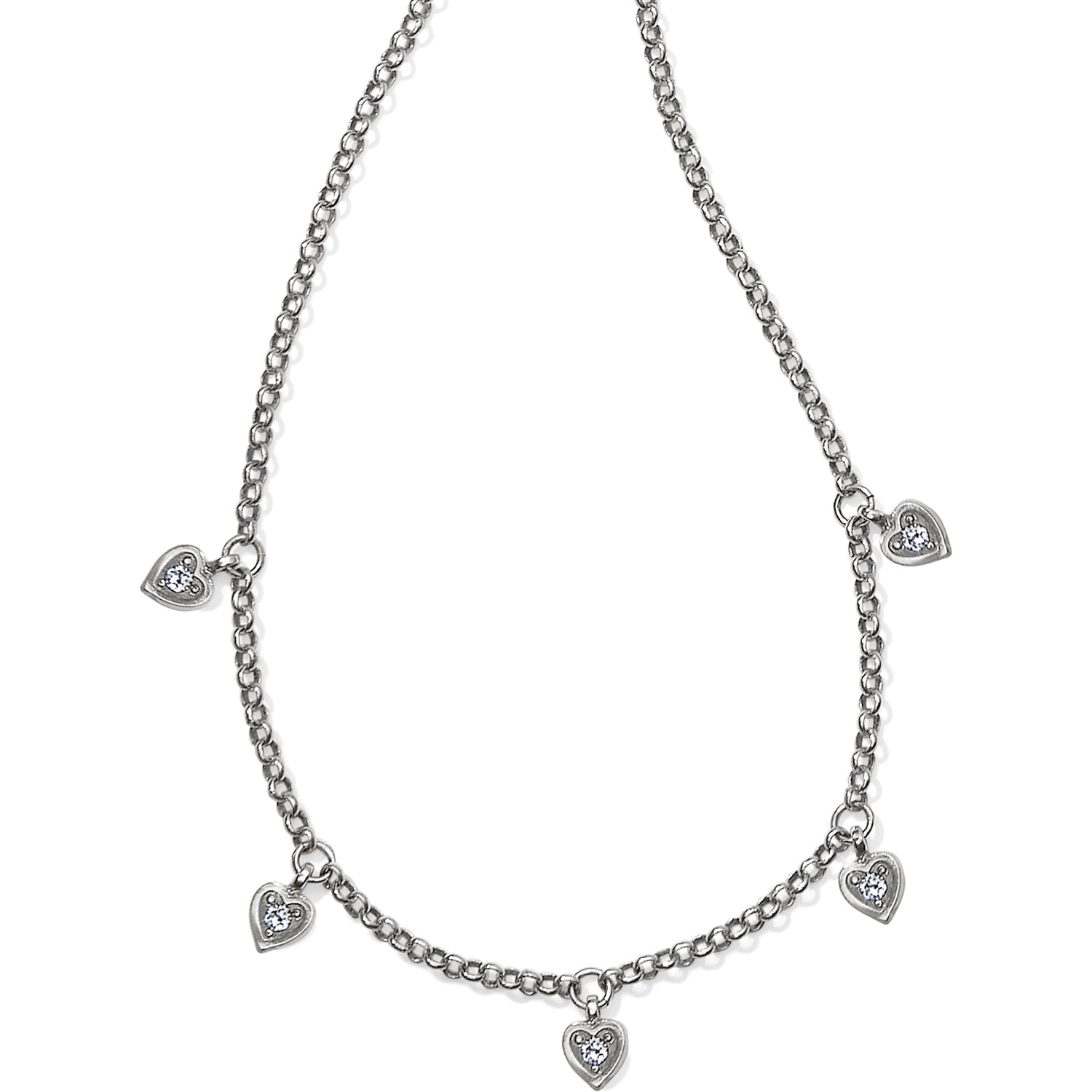 Five dainty hearts dangle from this delicate chain, each one sparkling with a hand-set Swarovski crystal.