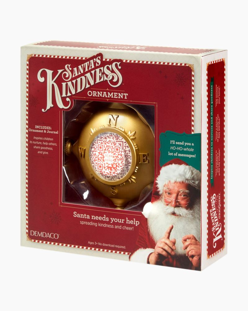 Your child can help Santa spread kindness and cheer throughout the holiday season with this ornament and journal set! Just scan the QR code on the ornament with a phone or tablet to receive messages from Santa - he'll give kids different kindness-spreading activities throughout the season, like drawing pictures, writing letters, or giving their family members a big hug! The accompanying journal gives them plenty of scribbling space to complete the activities.