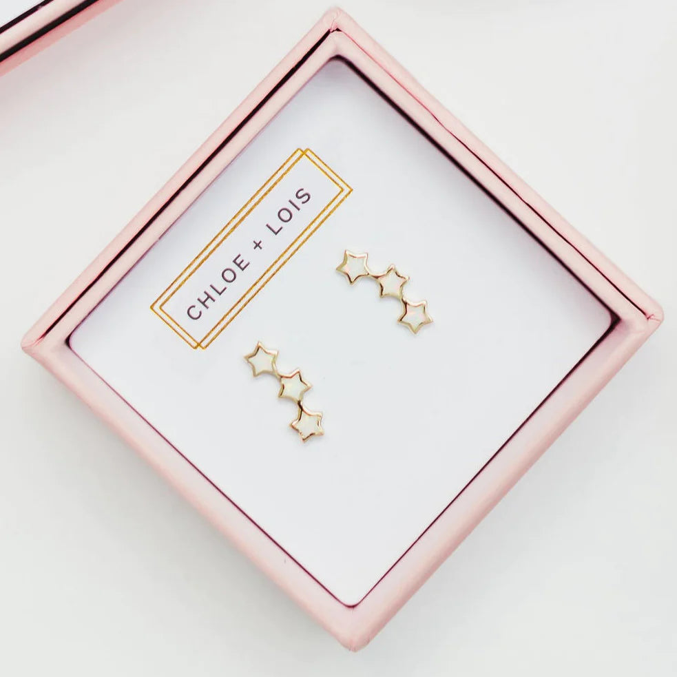 Chloe + Lois "Starry Night" Ear Climbers in White Opal