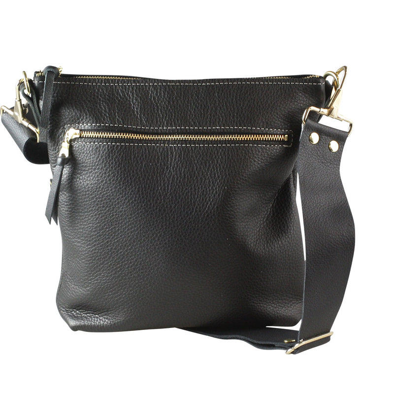 Lined in matching neutral. Small leather zipper pull. Adjustable Griffin leather strap, approximately 1.5" wide. Solid brass hardware. Measures approximately 9" x 8.